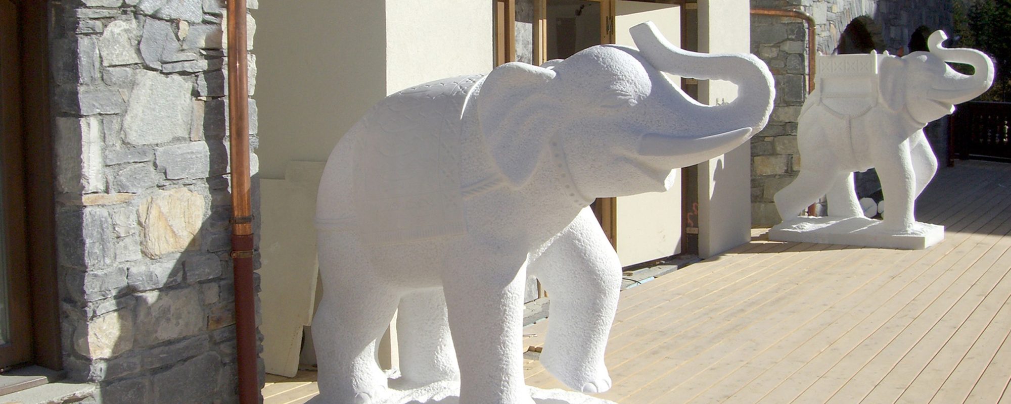 Our supply included formal seats, restaurant chairs and decorative panel and the external majestic elephants sculptures, obtained by single white marble blocks from Vietnam